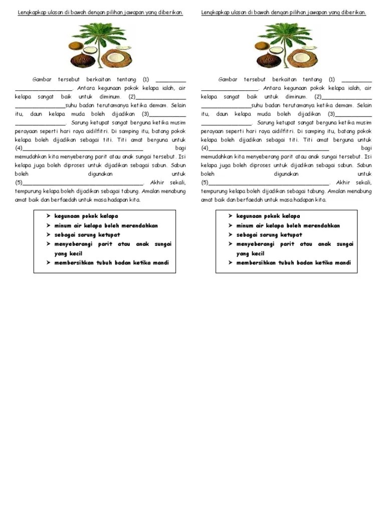 Ayat Ulasan Kegunaan Pokok Kelapa / Malaysian Language Course Training Practice Questions In Malay Language Notes